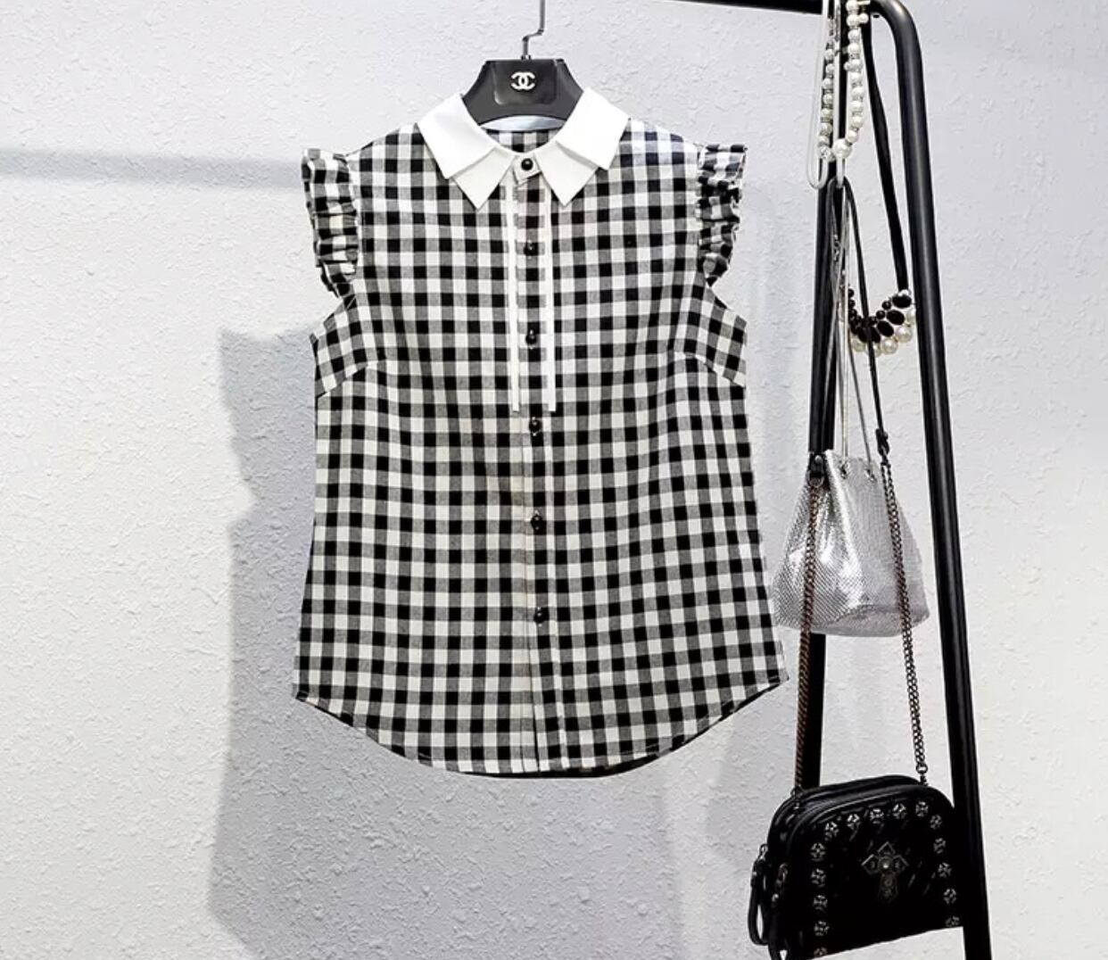 【❤︎】袖フリルギンガムチェックトップス♡261