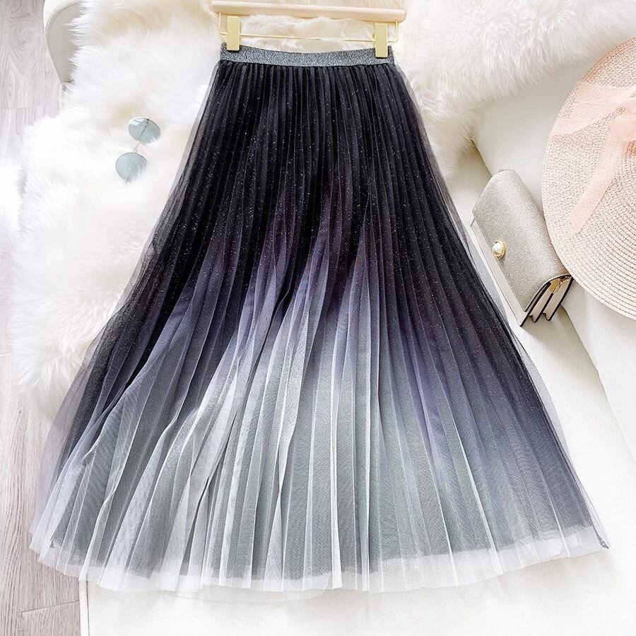 【❤︎】gradation lamé tulle skirt 3color♡552