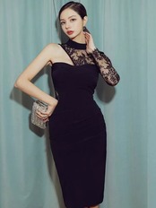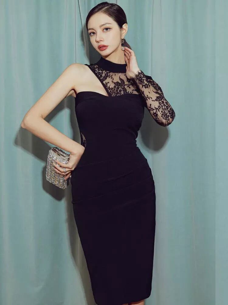 Black lace body conscious one-piece♡819