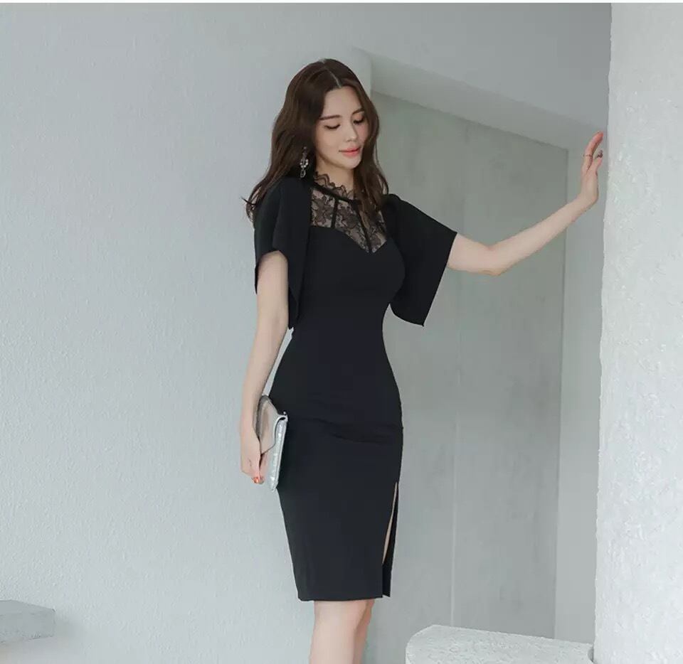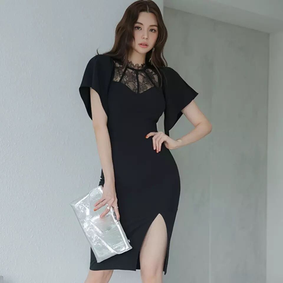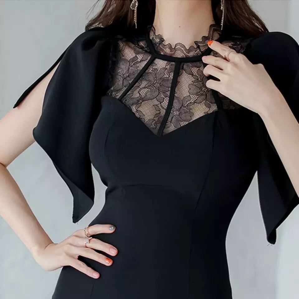 Black lace body conscious one-piece♡821