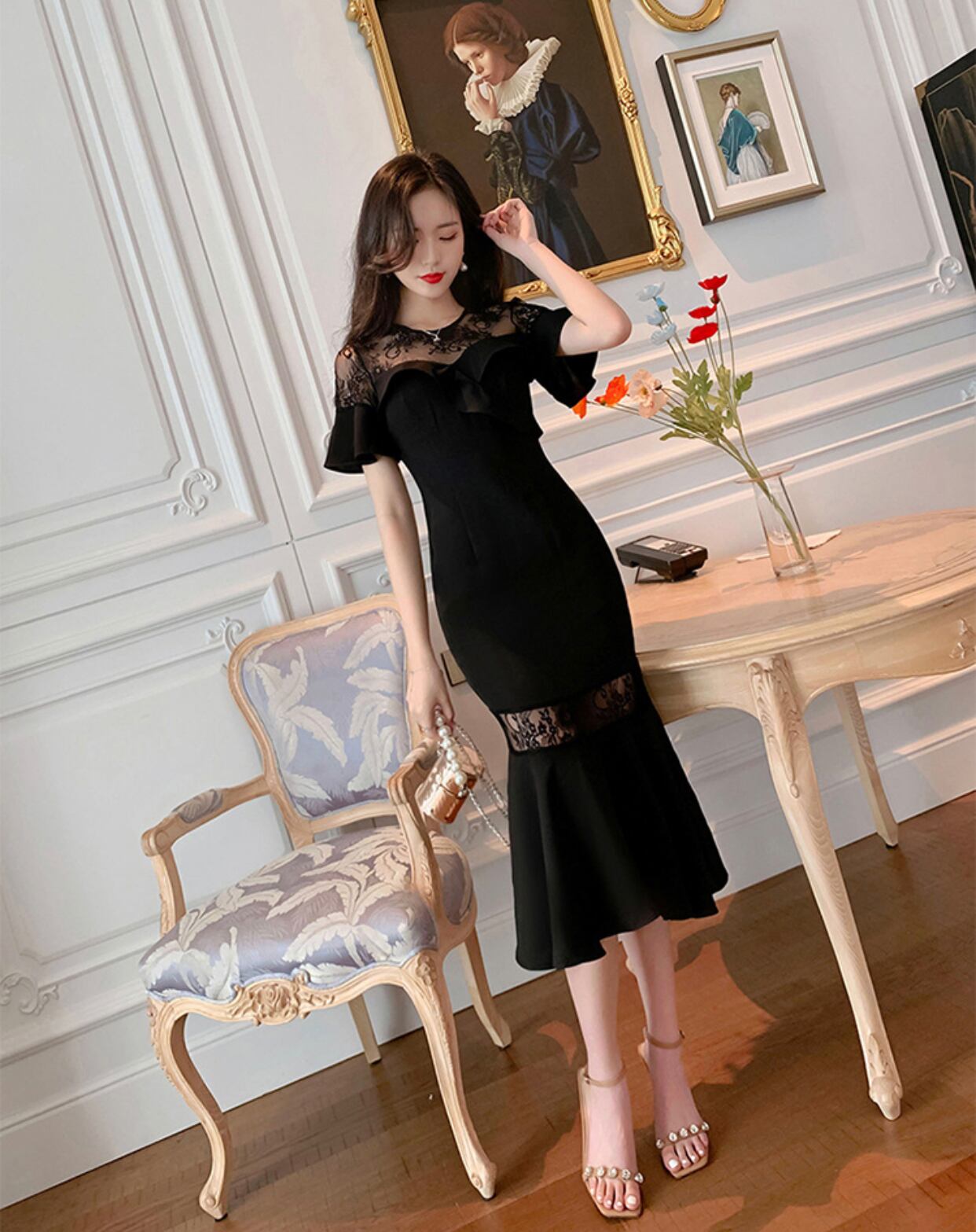 Black lace marmad one-piece♡822