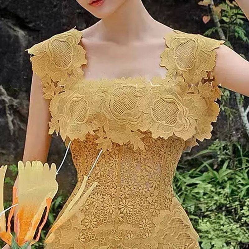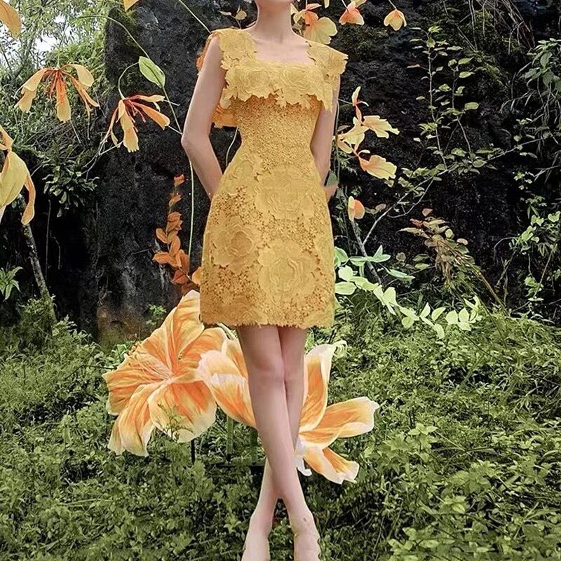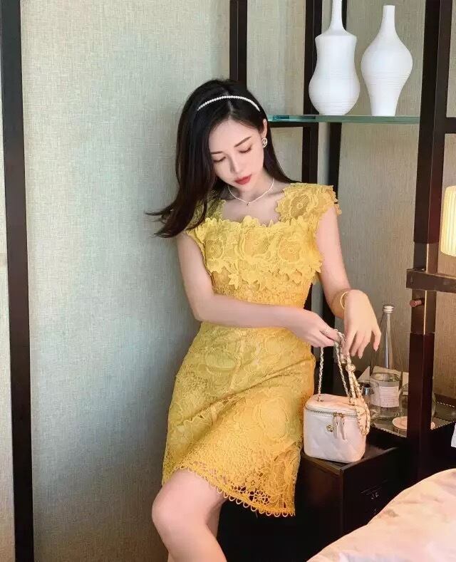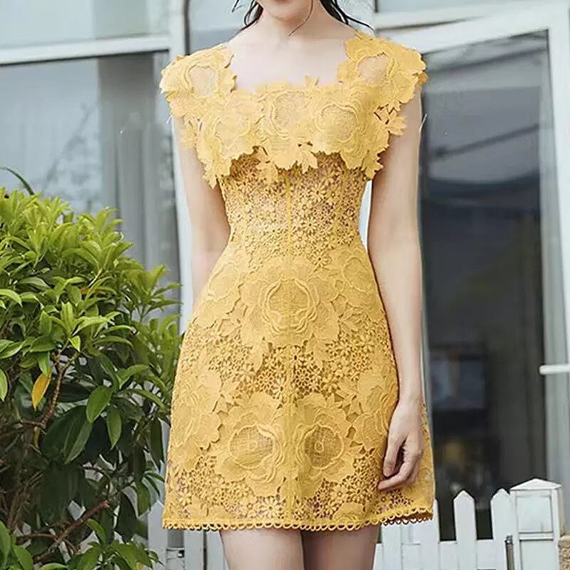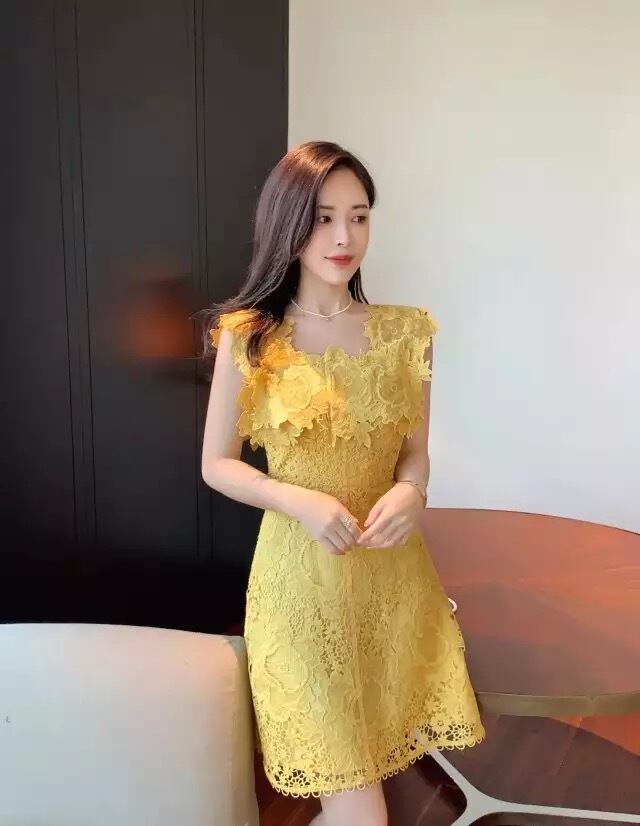 flower lace one-piece yellow♡856