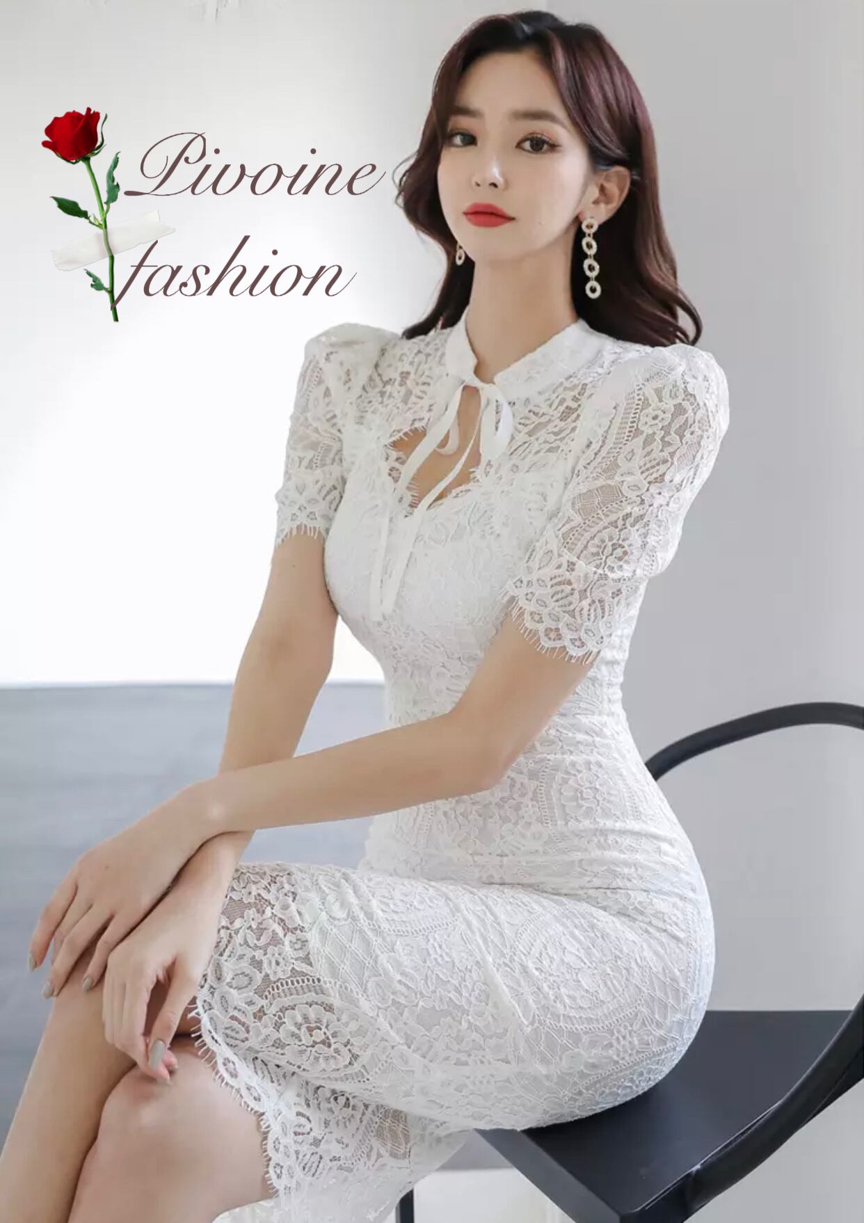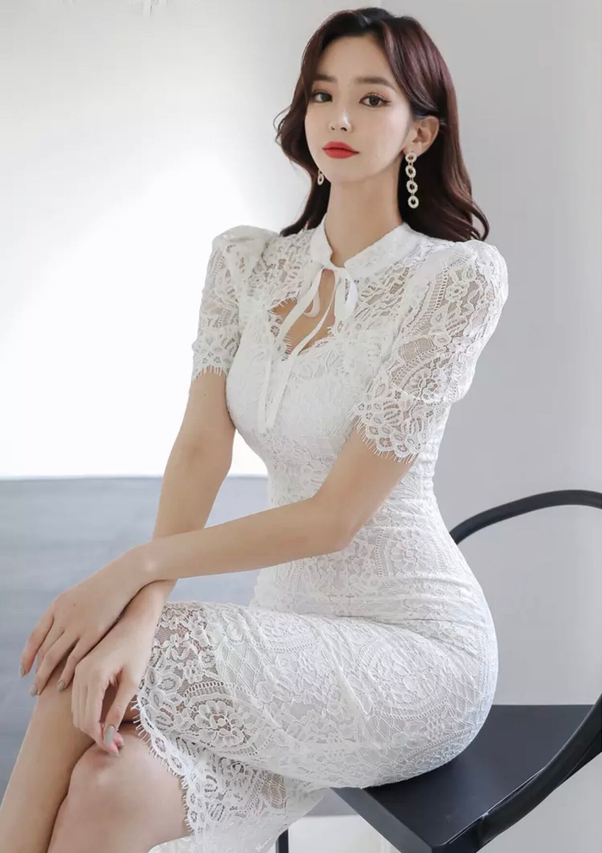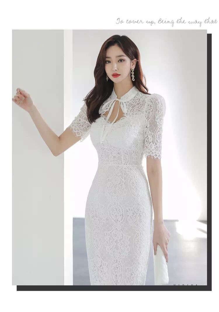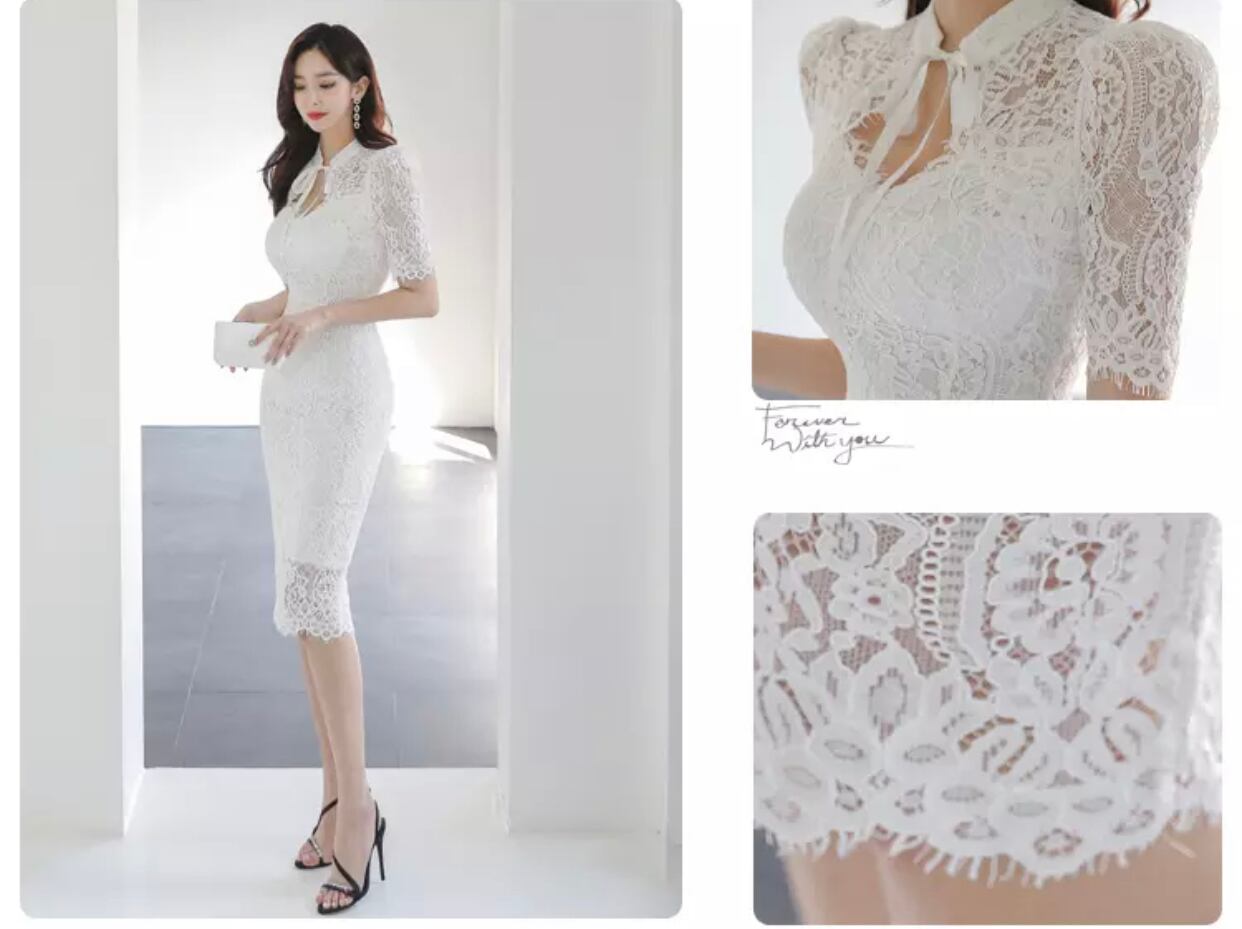 lace body conscious one-piece white♡876
