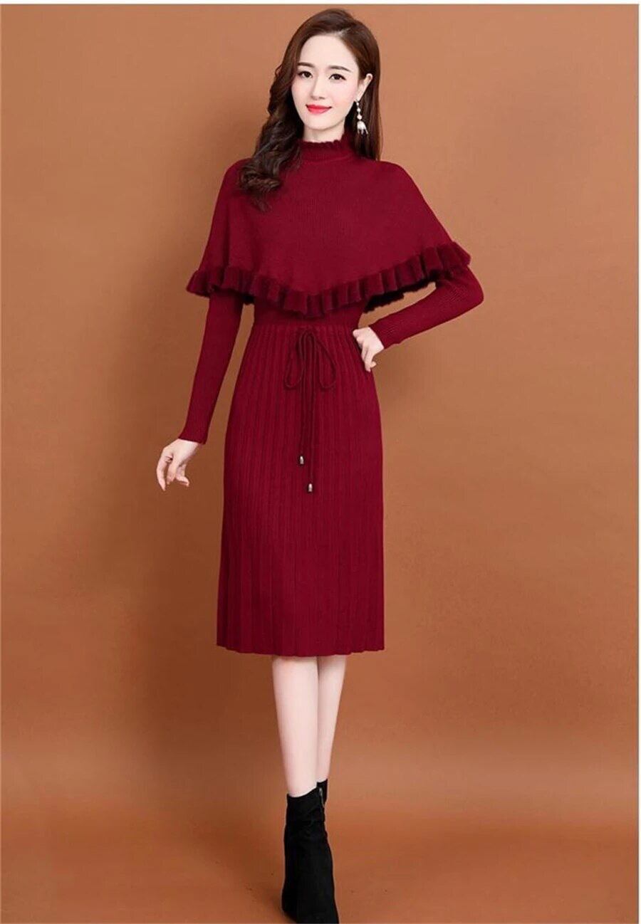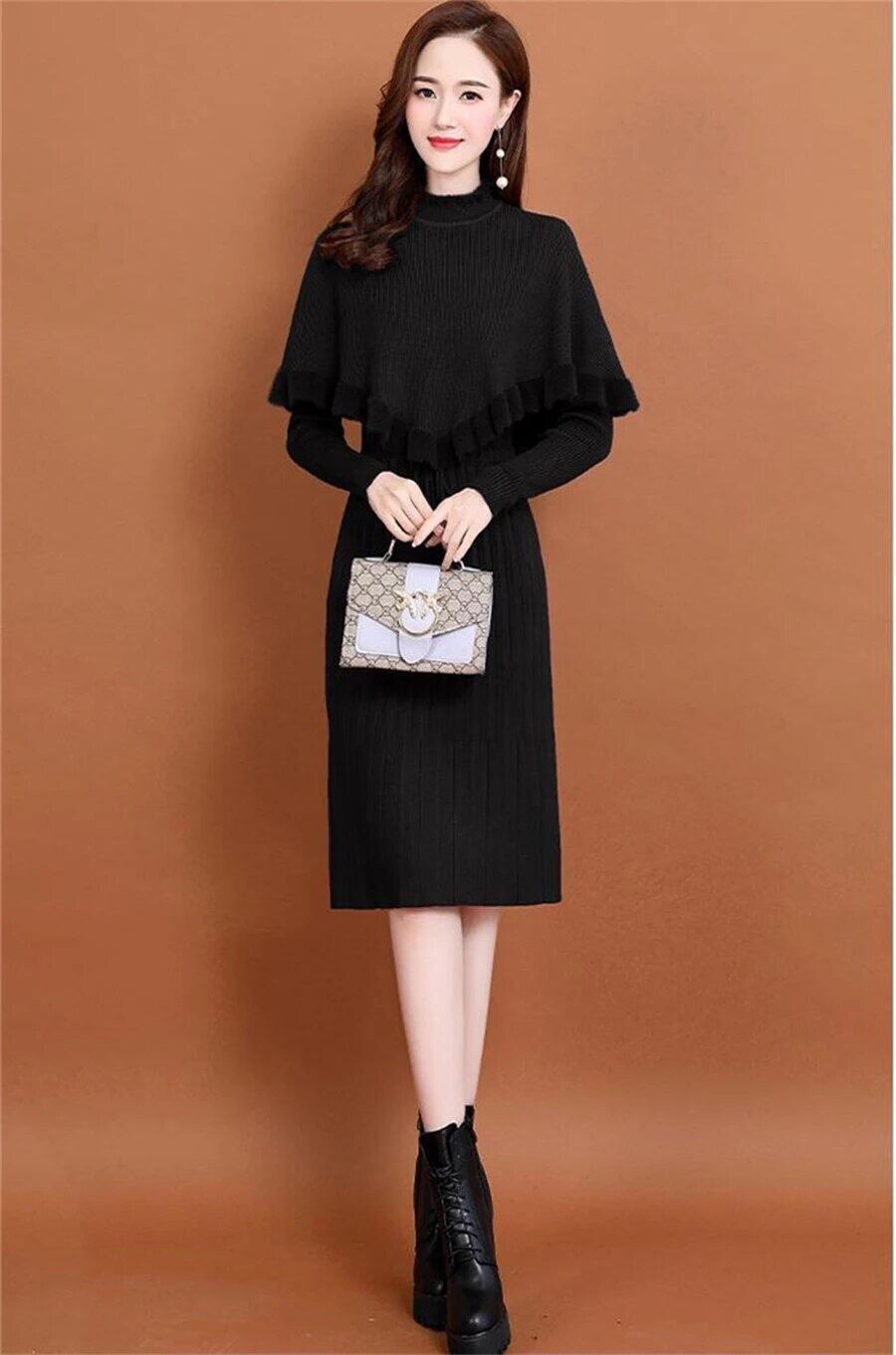 (XL)バスト102 ウエスト81 着丈98 ケープ着丈56