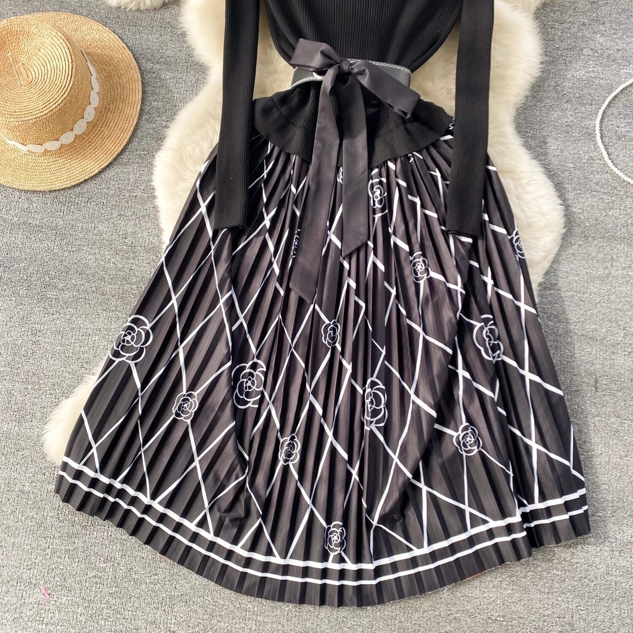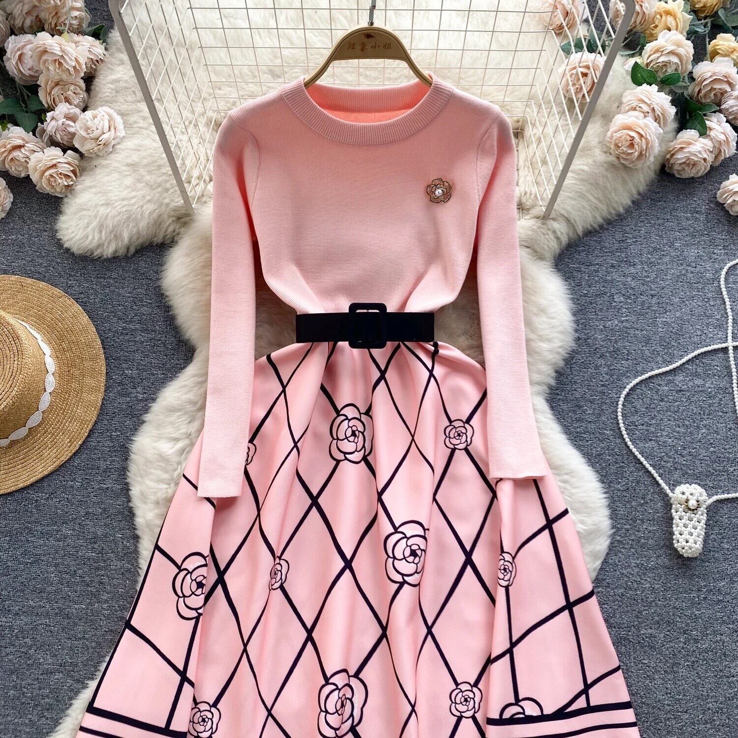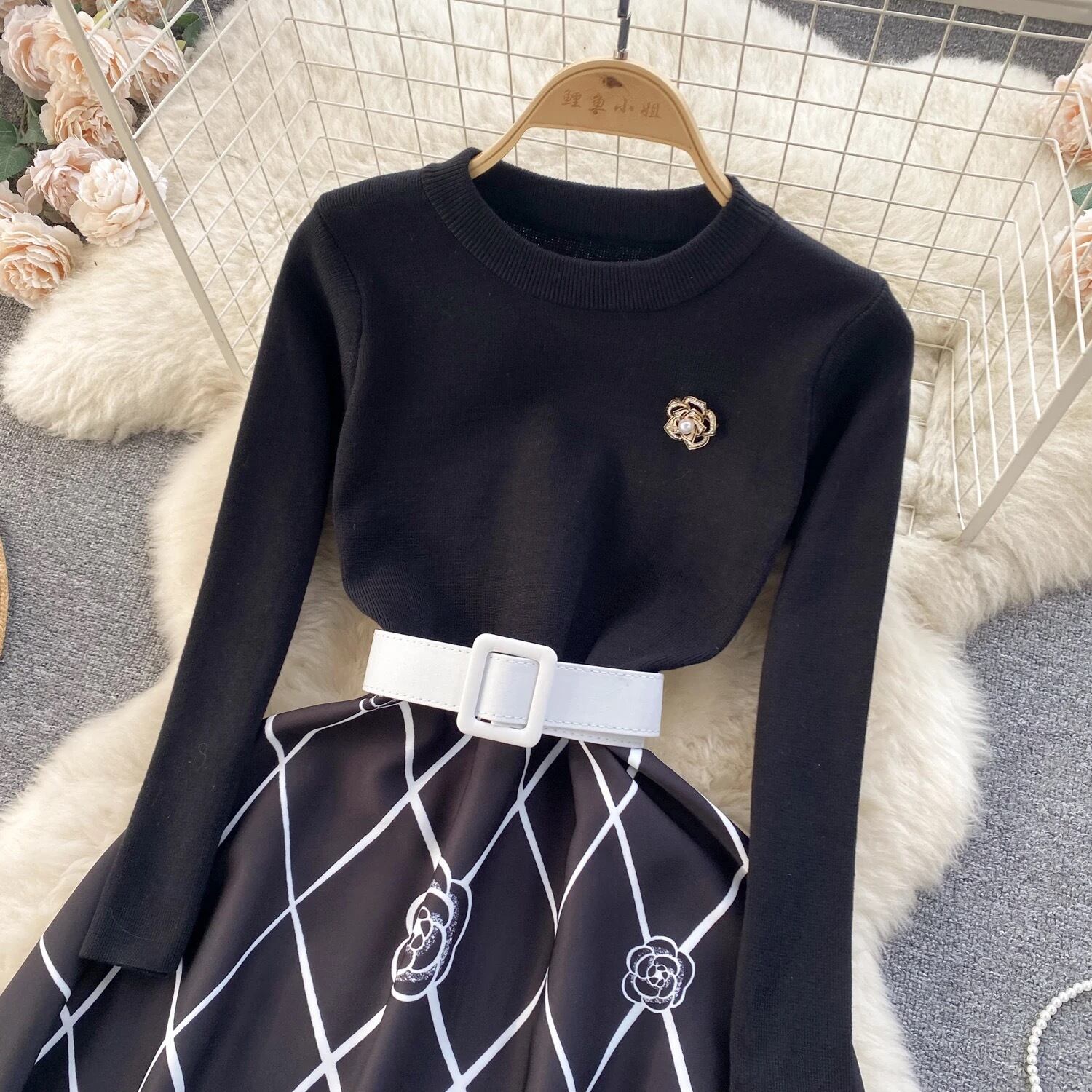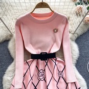 Knit flower one-piece 2color66