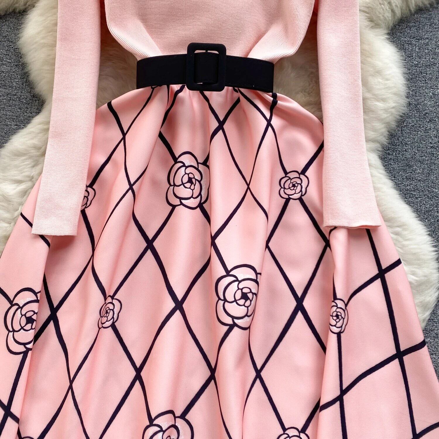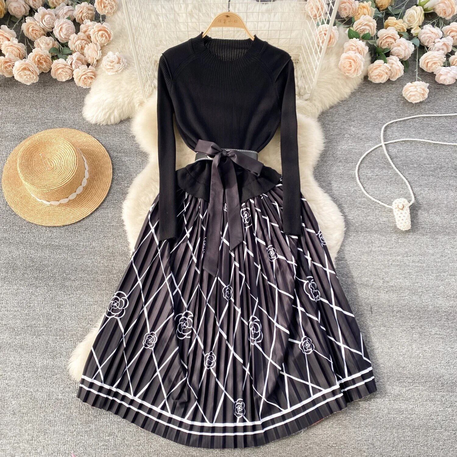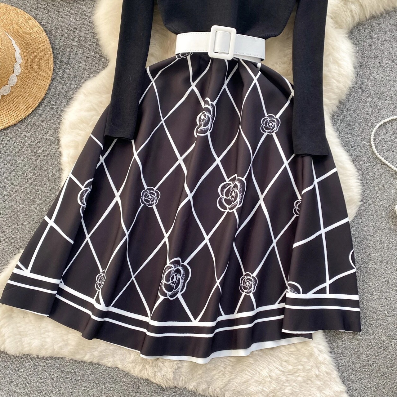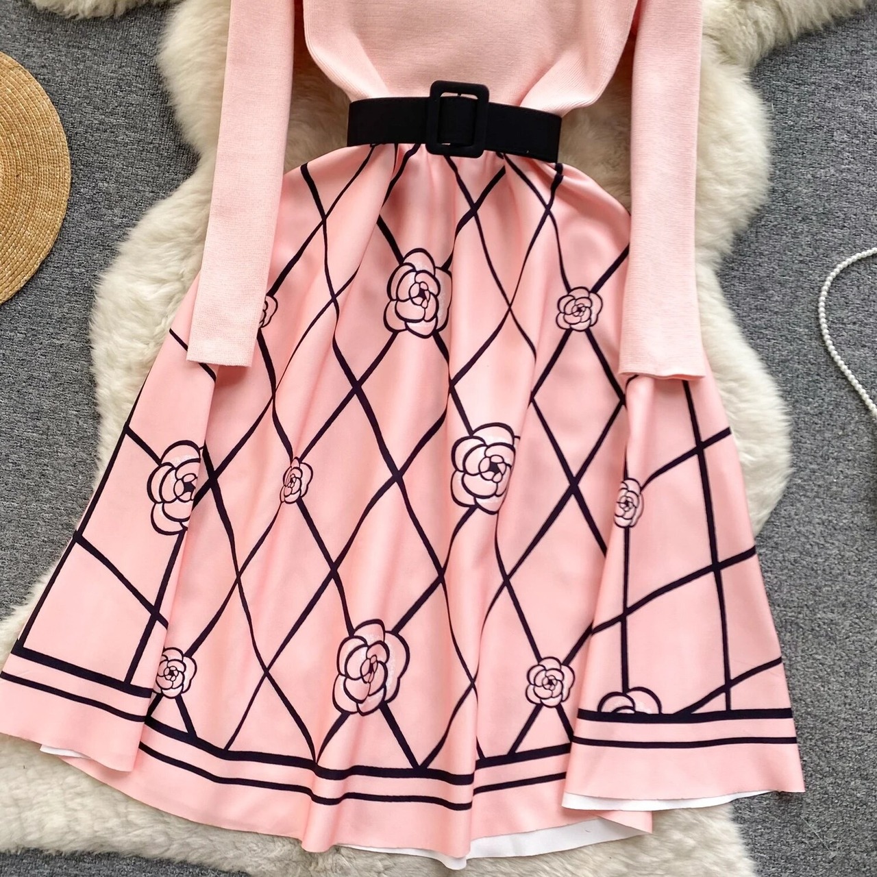 Knit flower one-piece 2color66
