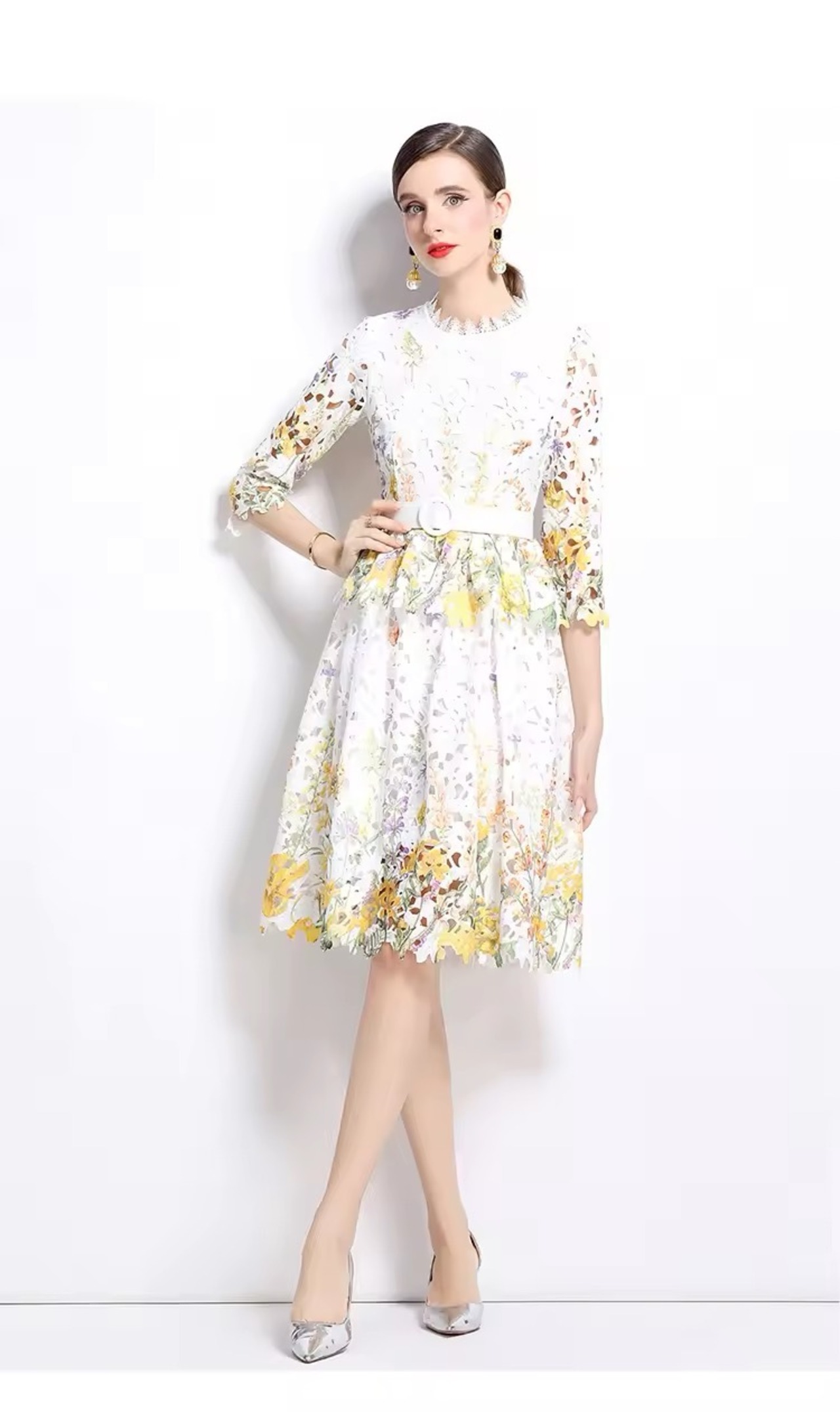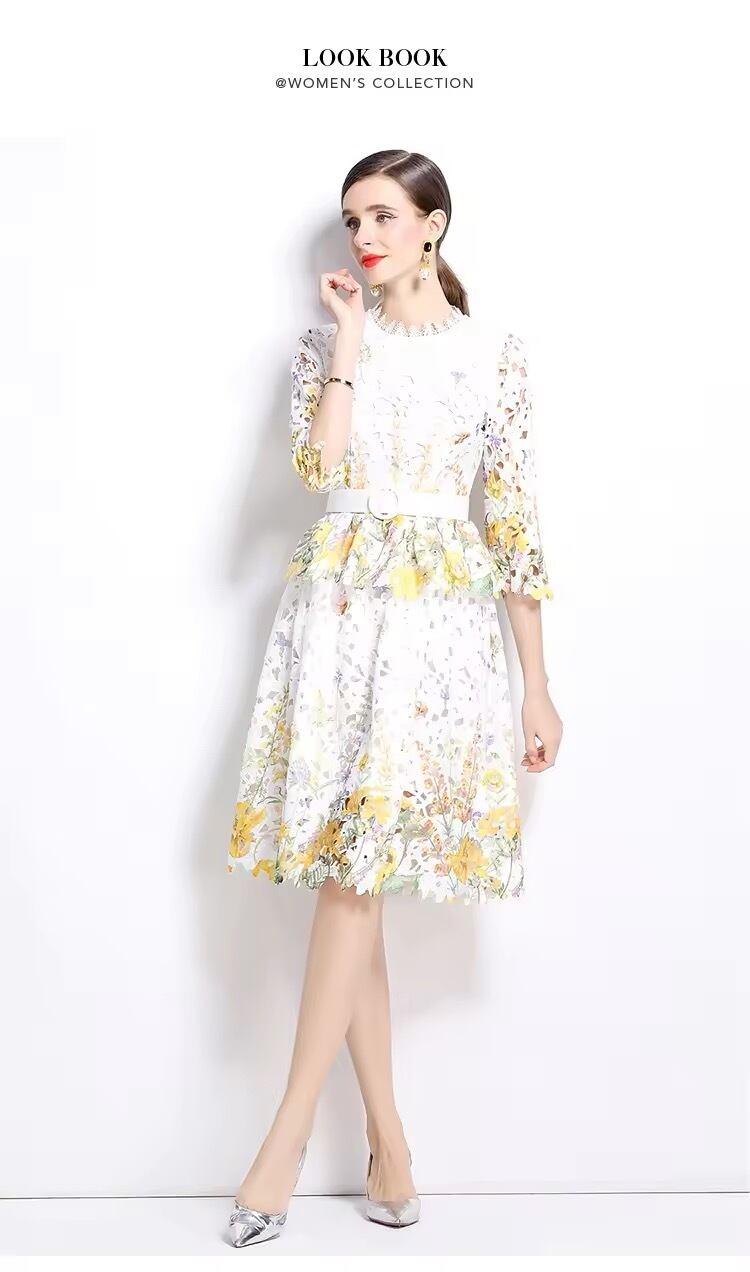 lace flower A line 2piece yellow95