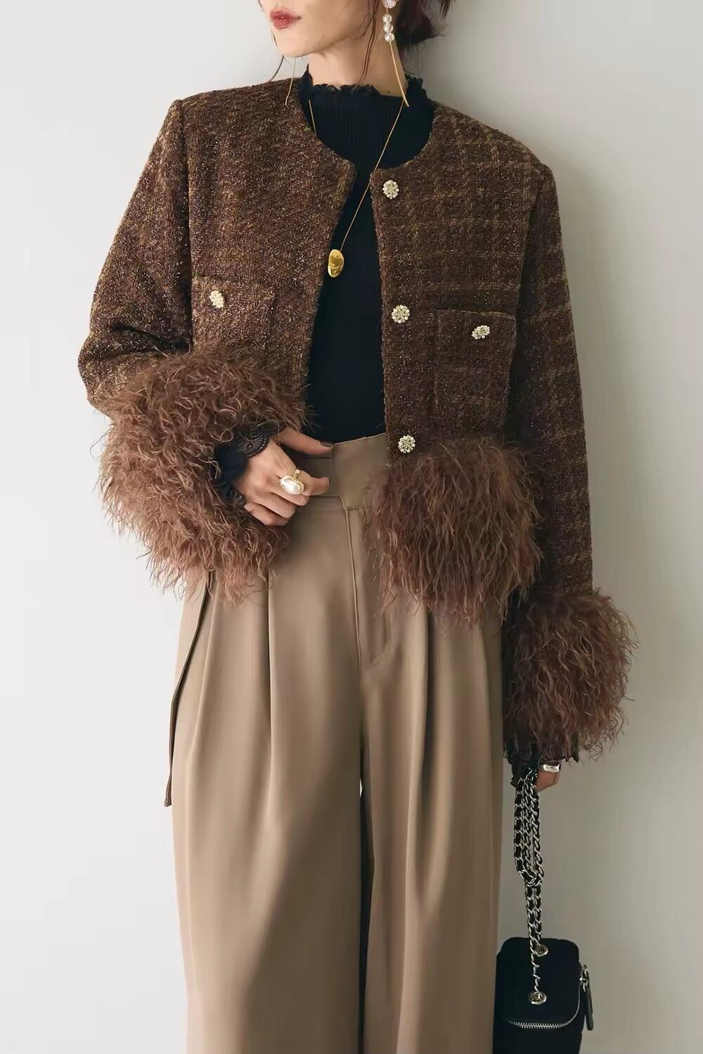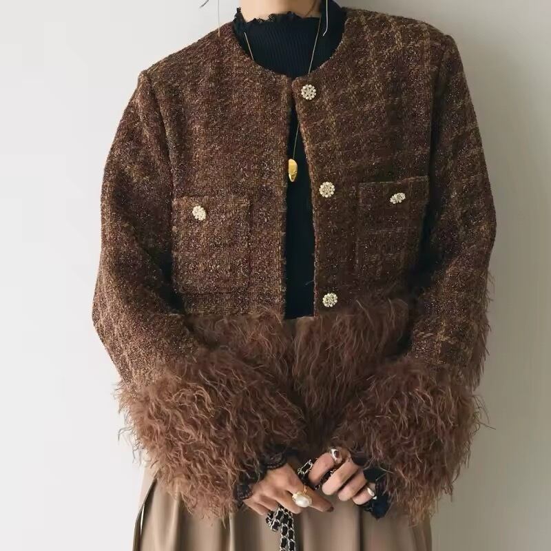 tweed fur coat 2color 101
