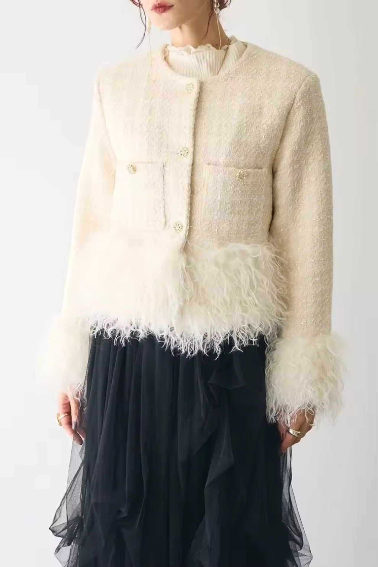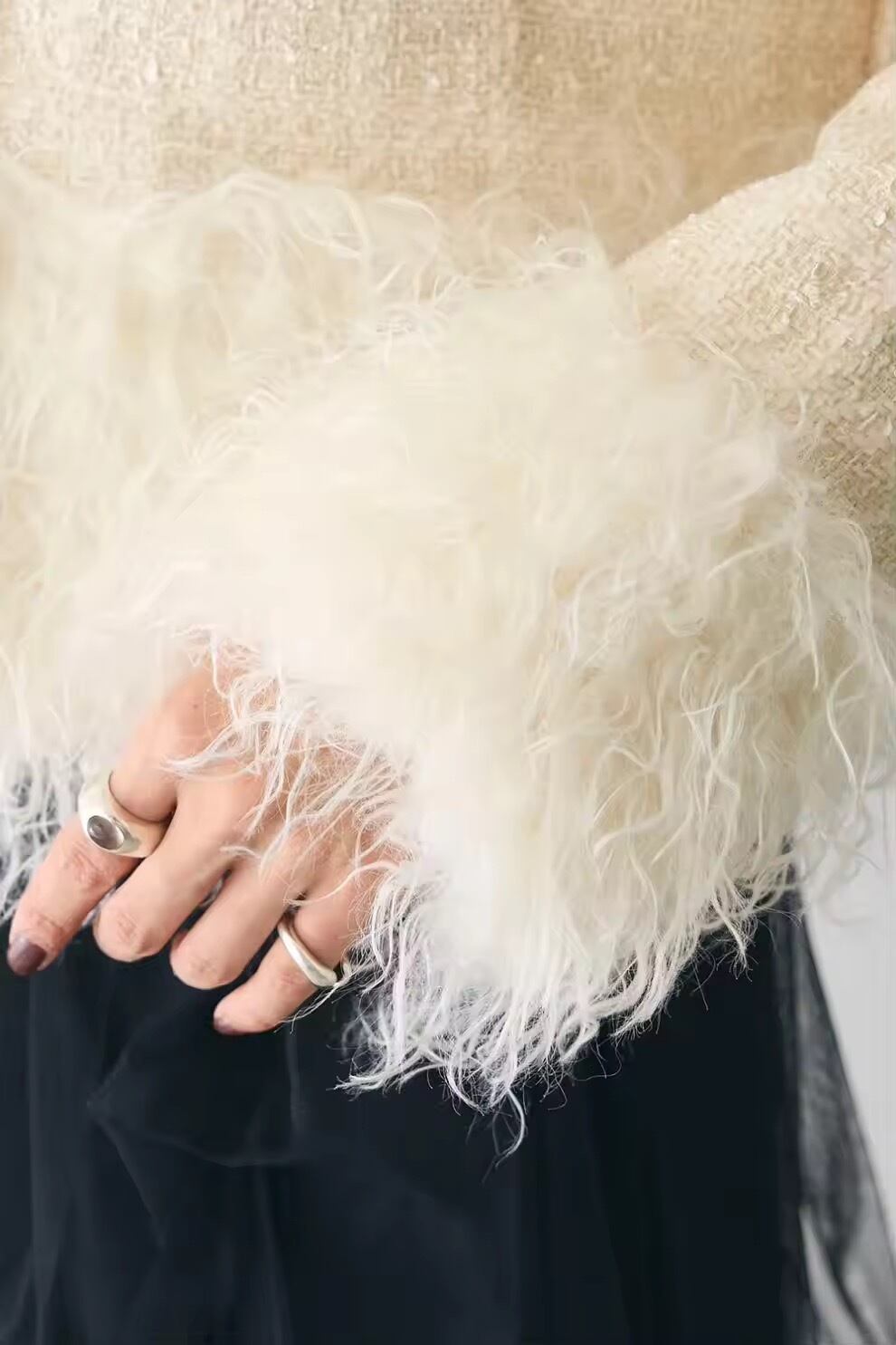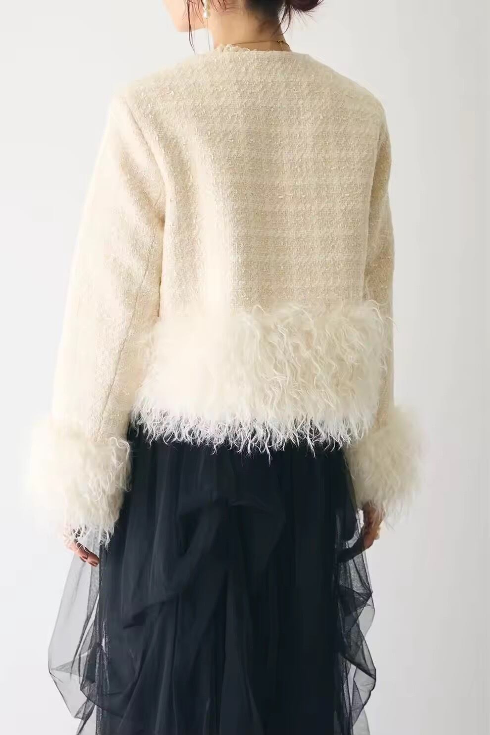 •袖、裾切り替えプードルファー